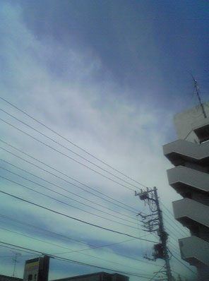 帯状の雲と電線がイイ感じの洗濯日和です。
