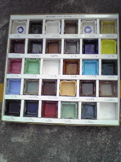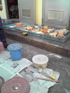 今日は素焼きが終わって、釉薬(ゆうやく)というので色を入れる日でした。